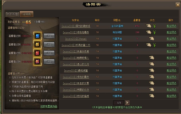 同服的玩家会根据温馨值进行排序,温馨值越高排序越靠前。